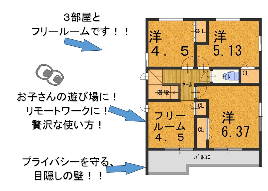 居室とは別に、フリールームが有るのが